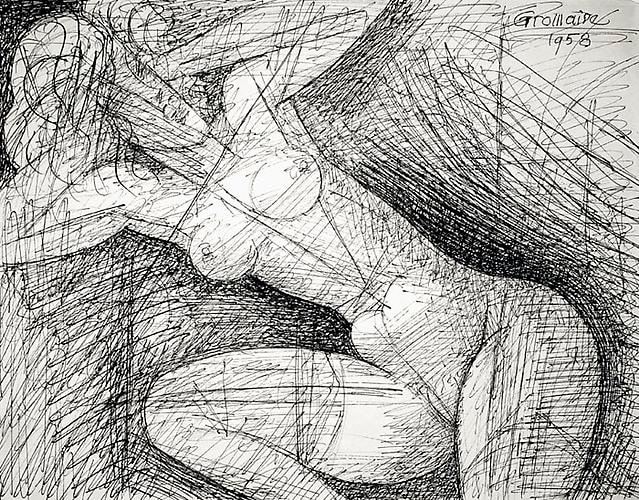 Nu, mains dans la chevelure, 1958 Pen and ink drawing 24.5 x 31.5 cm.; 9 ½ x 12 ¼ inches Signed and dated, upper right