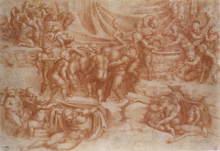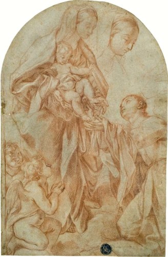 Dark red chalk used in a silverpoint manner, on light tan paper